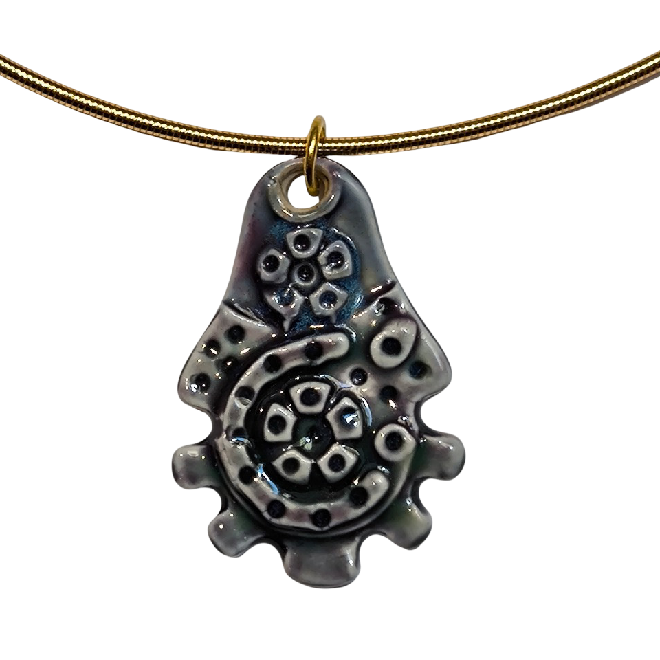 Pieza única de porcelana elaborada con esmaltes sin plomo y con una dimensión aproximada de 45mm y un peso no superior a 20 gramos.