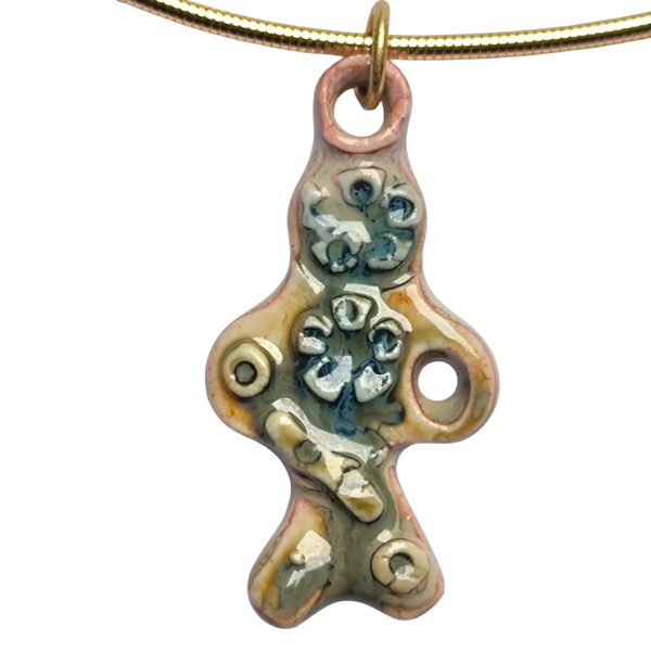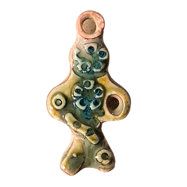 Pieza única de porcelana elaborada con esmaltes sin plomo y con una dimensión aproximada de 45mm y un peso no superior a 20 gramos.