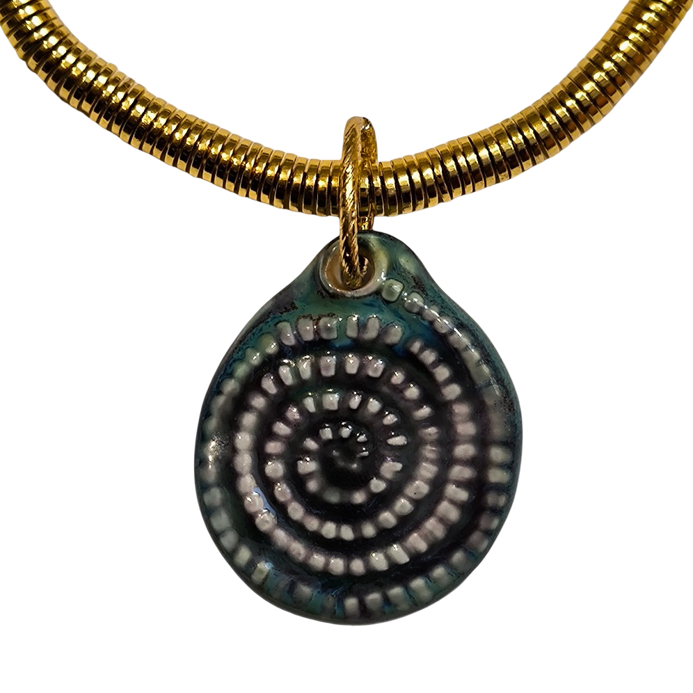 Se entrega en una gargantilla esamblada a mano con cadena de latón de alta calidad que incorpora delicados abalorios de vidrio o piedra natural. Con una longitud ajustable (40-45cm), la cadena ha sido seleccionada cuidadosamente para armonizar con el esmalte y los matices cromáticos de tu joya.