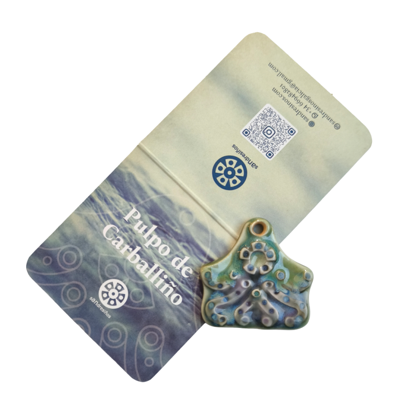 Pieza única de cerámica elaborada con esmaltes sin plomo y con una dimensión aproximada de 45mm y un peso no superior a 20 gramos.