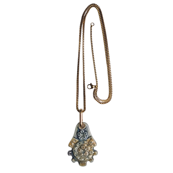 Se entrega montada en una cadena de fina de acero dorado y de longitud 40-45cm.