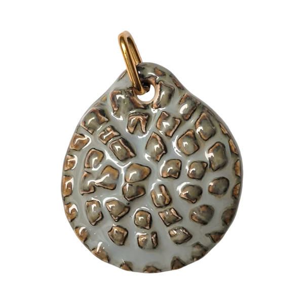 Pieza única de porcelana elaborada con esmaltes sin plomo y con una dimensión aproximada de 45mm y un peso no superior a 20 gramos.