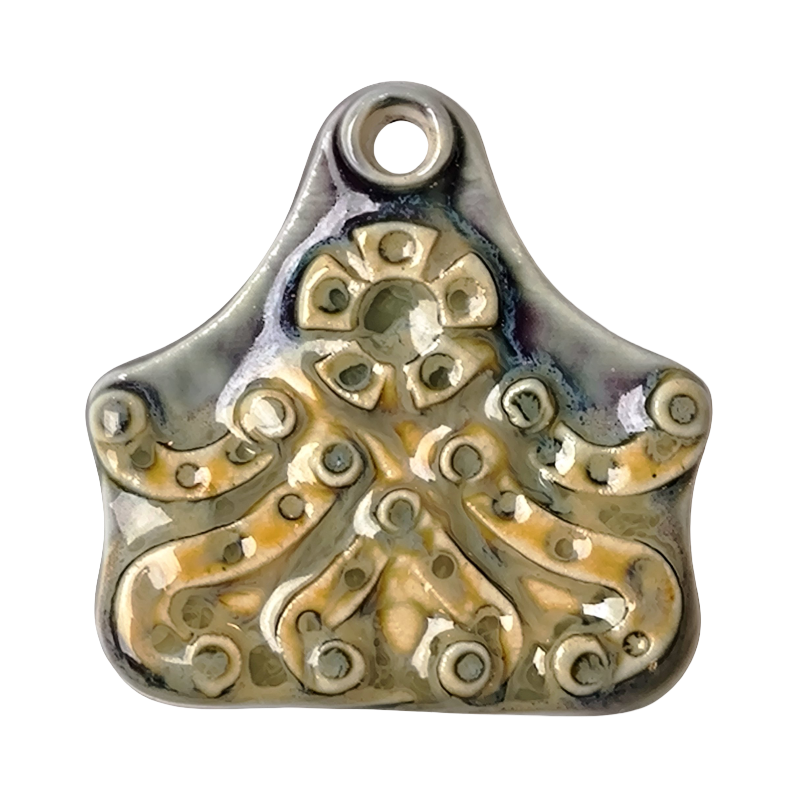 Pieza única de porcelana elaborada con esmaltes sin plomo y con una dimensión aproximada de 45mm y un peso no superior a 20 gramos.