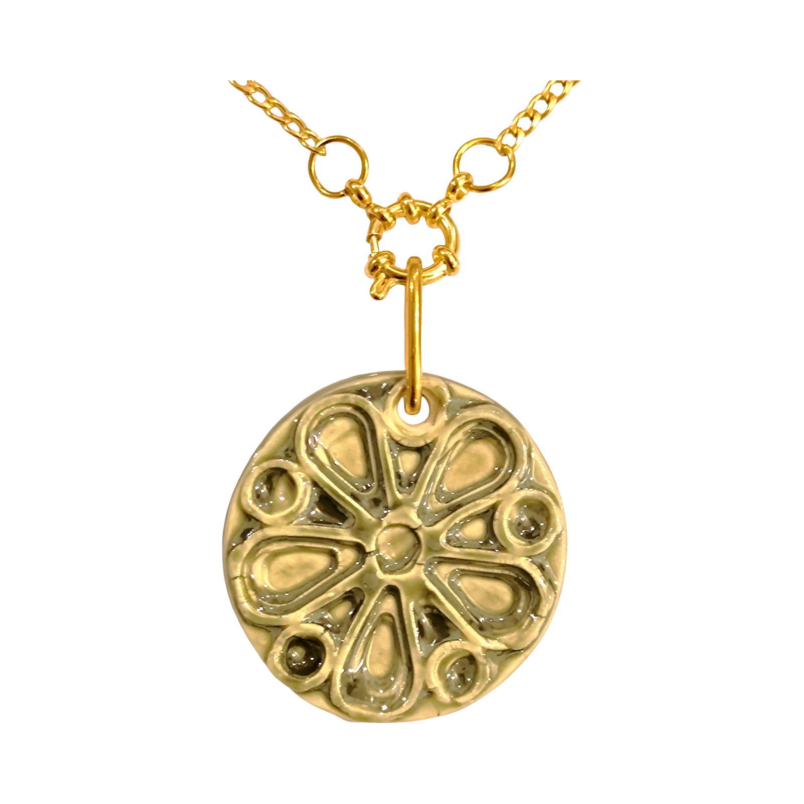 Pieza única de porcelana elaborada con esmaltes sin plomo y con una dimensión aproximada de 45mm y un peso no superior a 20 gramos.