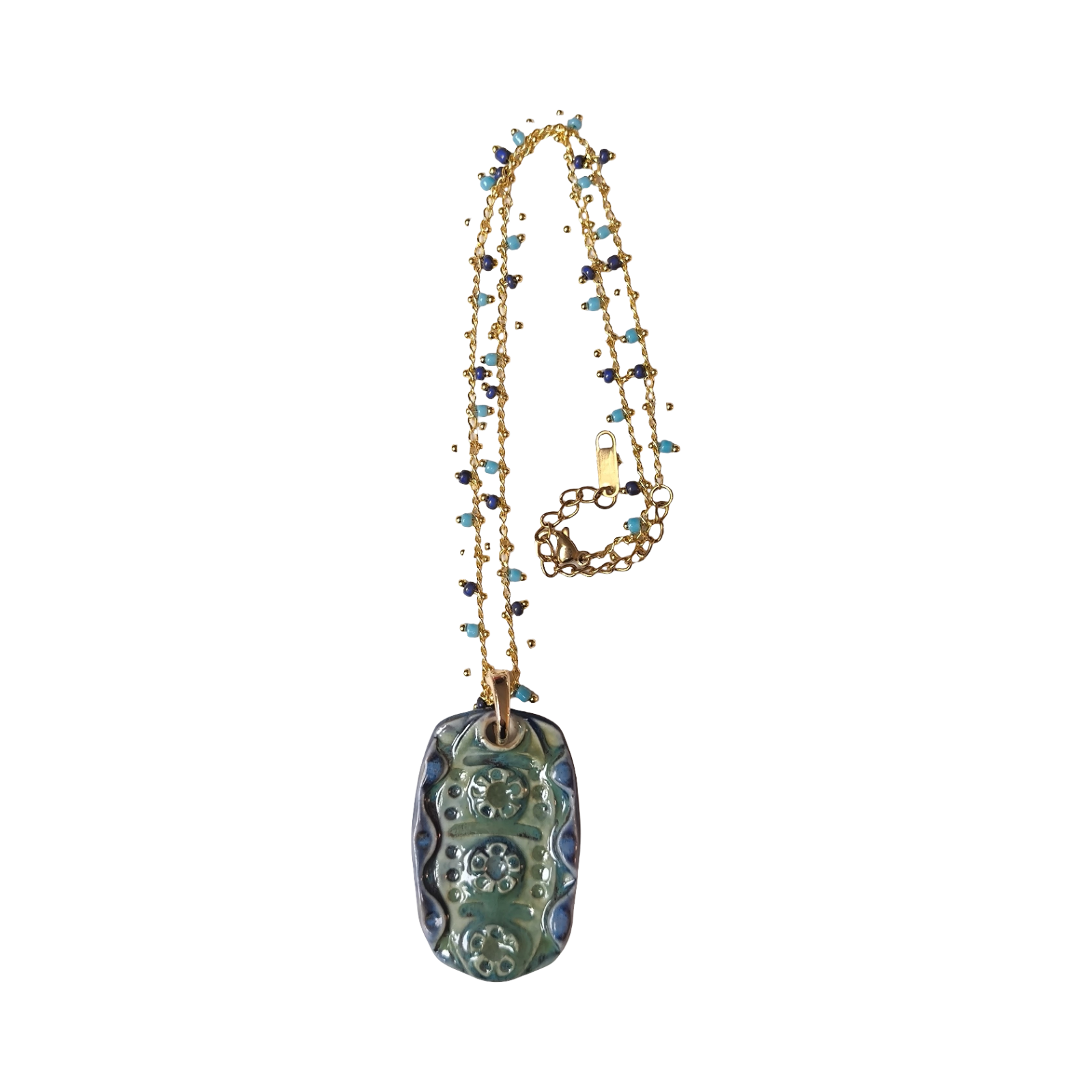 Pieza única de porcelana elaborada con esmaltes sin plomo y con una dimensión aproximada de 45mm y un peso no superior a 20 gramos.