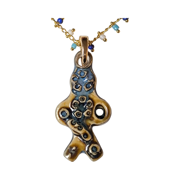 Pieza única de porcelana elaborada con esmaltes sin plomo y con una dimensión aproximada de 45mm y un peso no superior a 20 gramos.