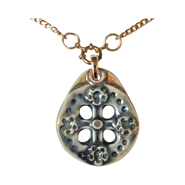 Pieza única de porcela con esmaltes sin plomo horneada a 1.250º. La pieza con argolla no supera los 20 gramos.
