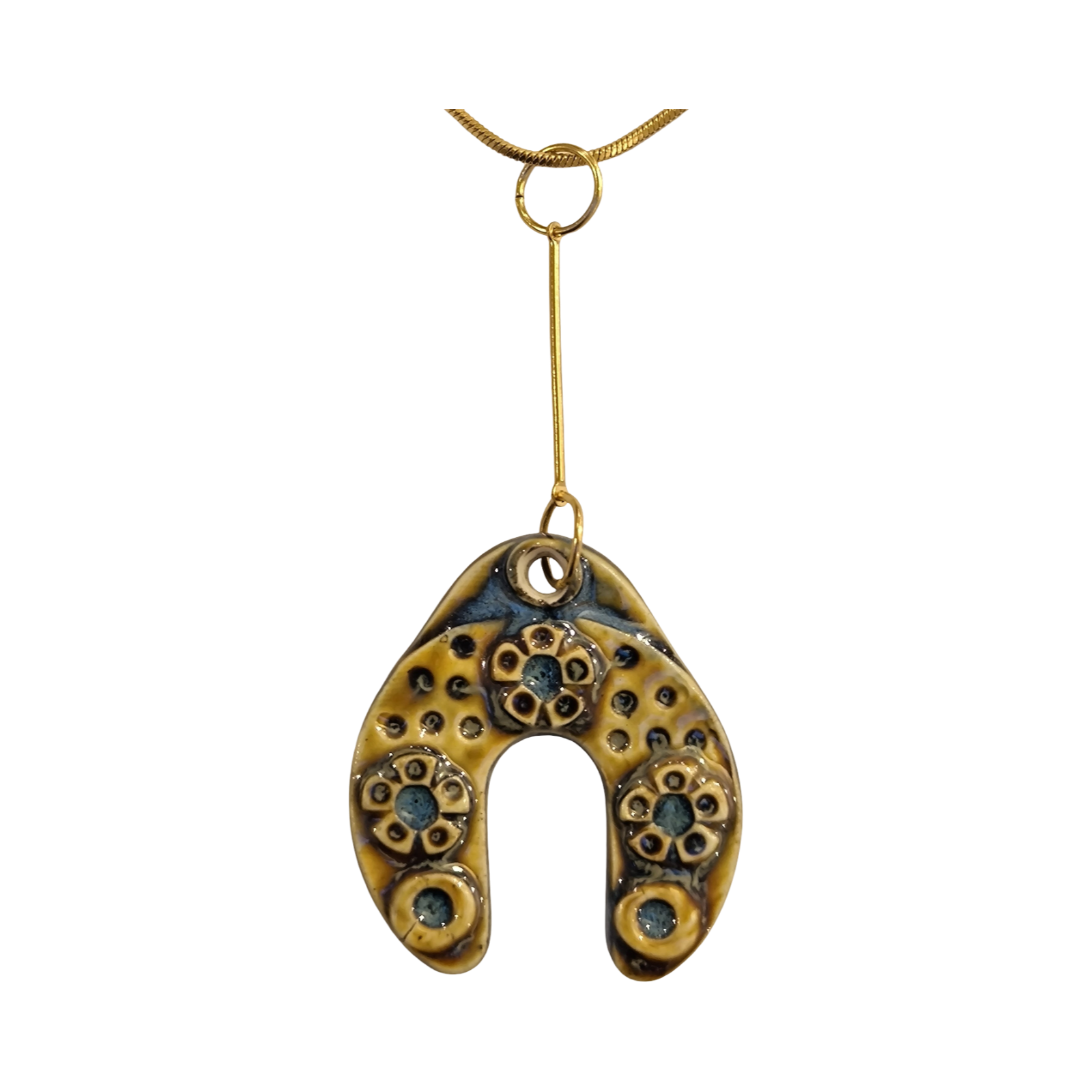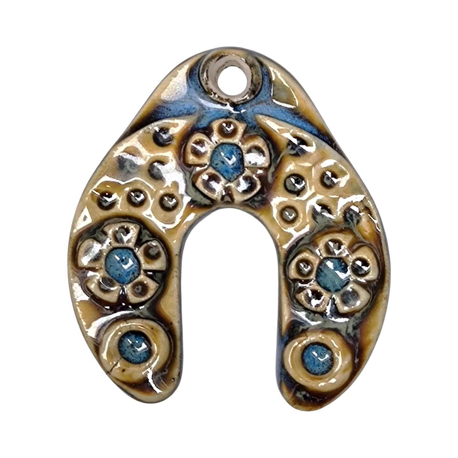 Pieza única de cerámica elaborada con esmaltes sin plomo y con una dimensión aproximada de 45mm y un peso no superior a 20 gramos.