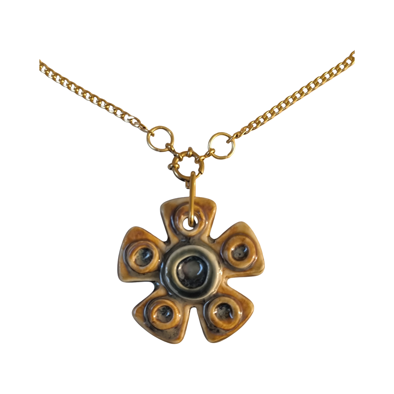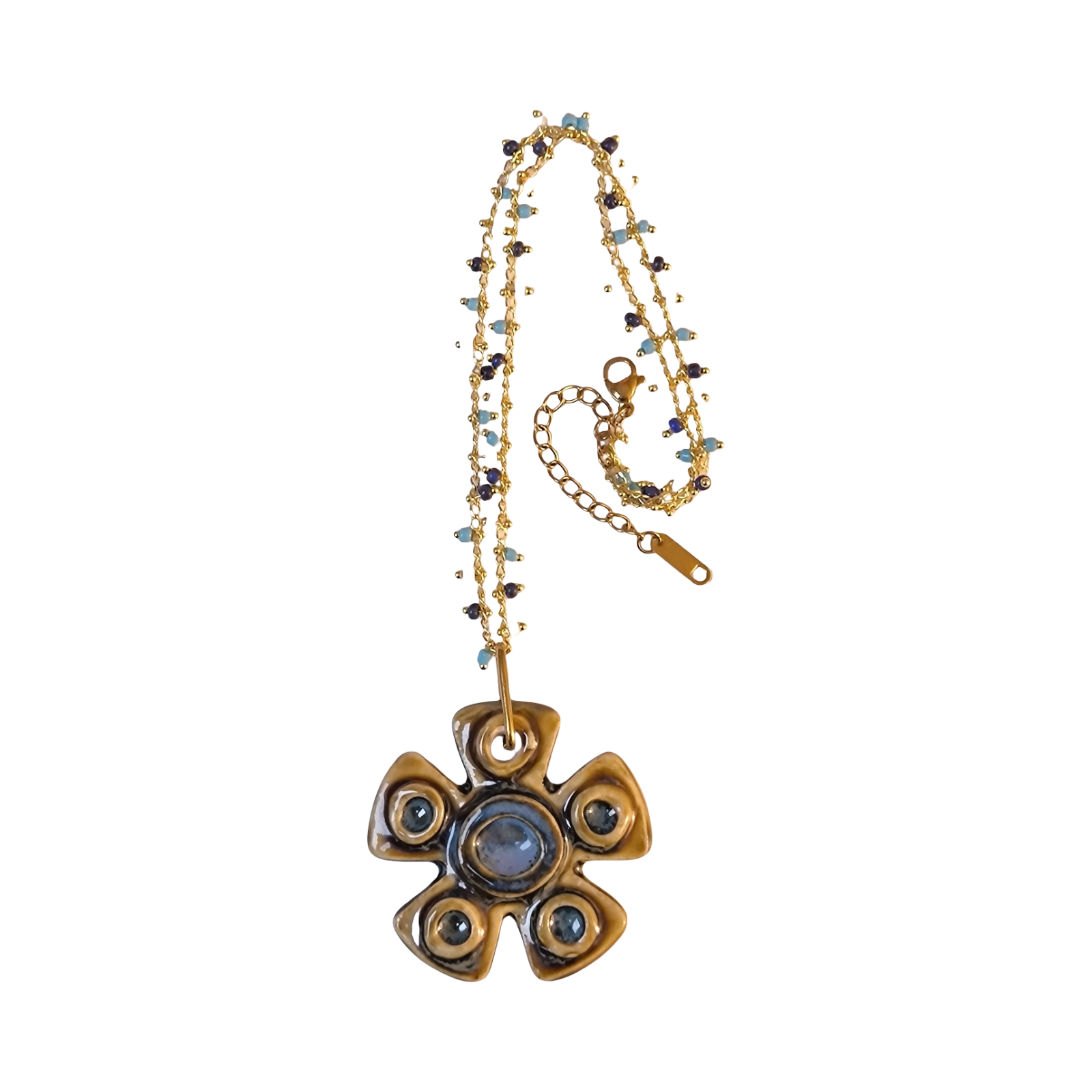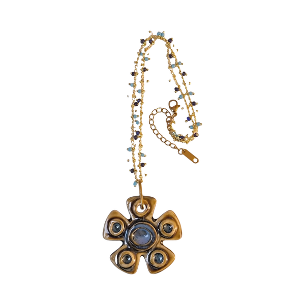 Se entrega montada en una cadena de eslabones de acero dorado y de longitud 40-45cm.