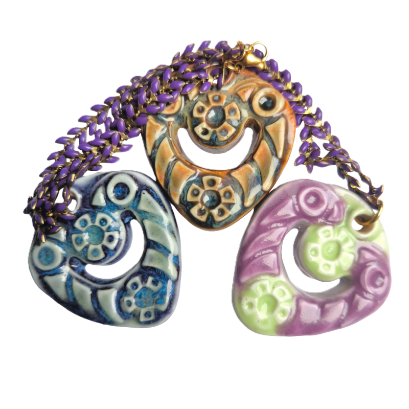 Morados y Verdes / 45mm x 40mm / Porcelana / Cadena de latón espiga de 40-45cm